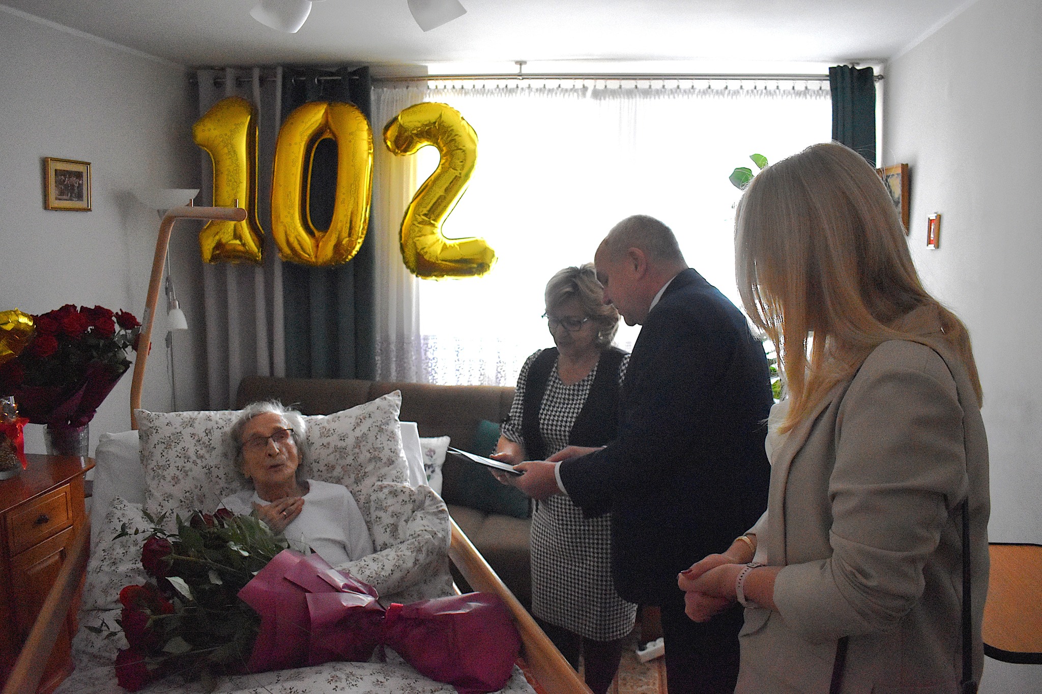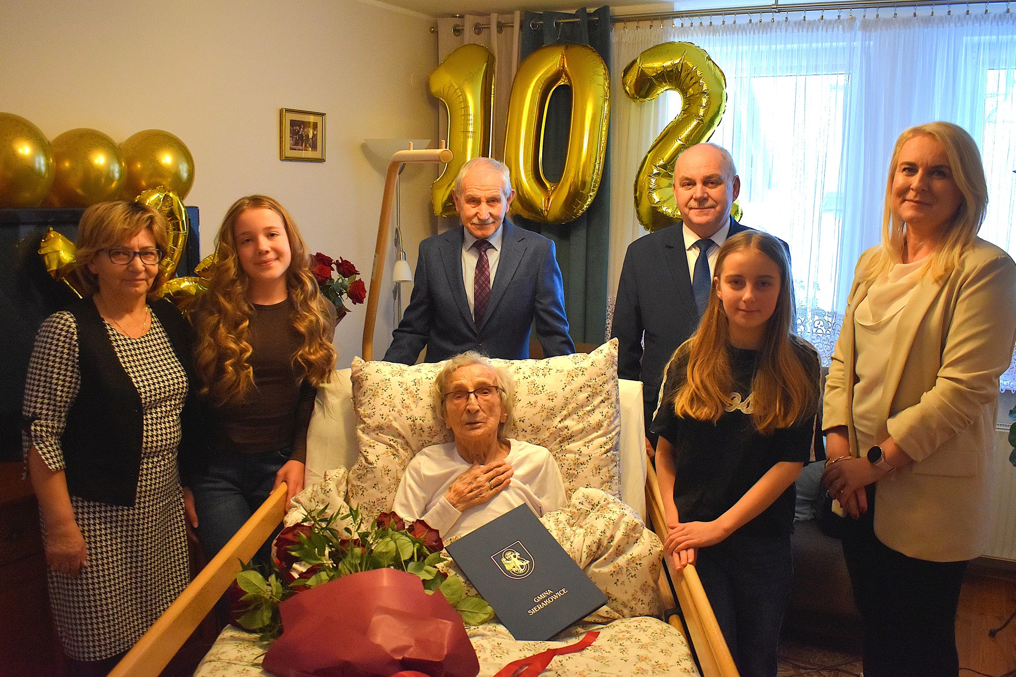 Z tej wyjątkowej okazji Solenizantkę, która obecnie przebywa u córki w Gdańsku, w piątek, 23 stycznia 2026 r., odwiedzili Wójt Gminy Sierakowice Mirosław Kuczkowski oraz Kierownik Urzędu Stanu Cywilnego w Sierakowicach Agnieszka Kostuch.