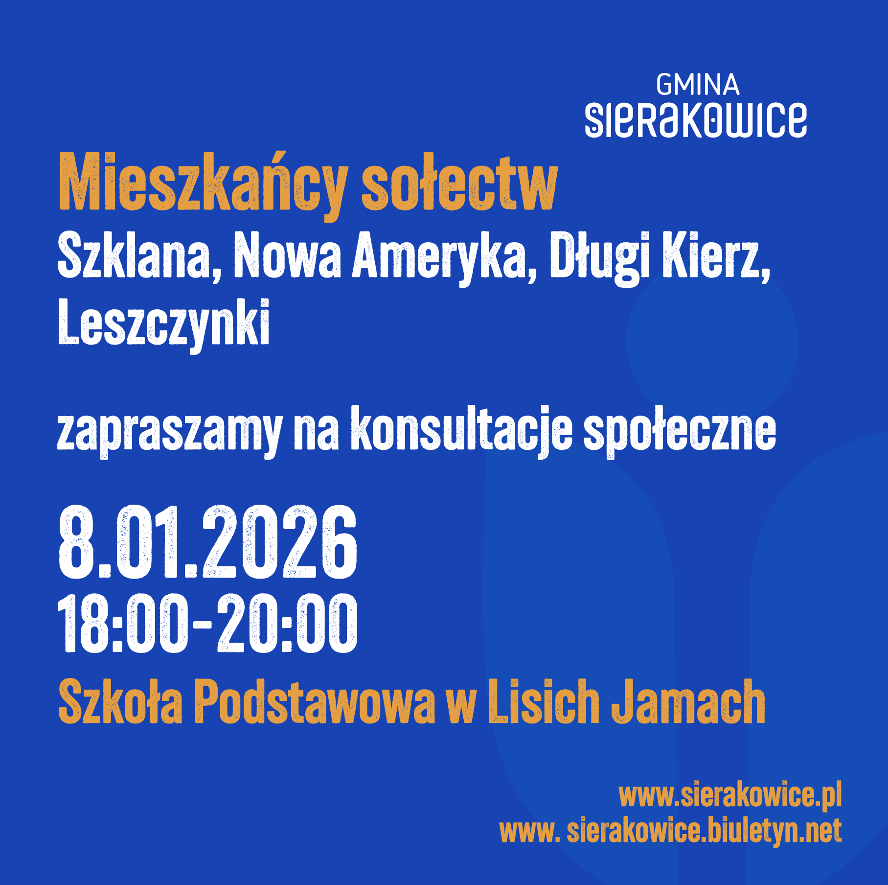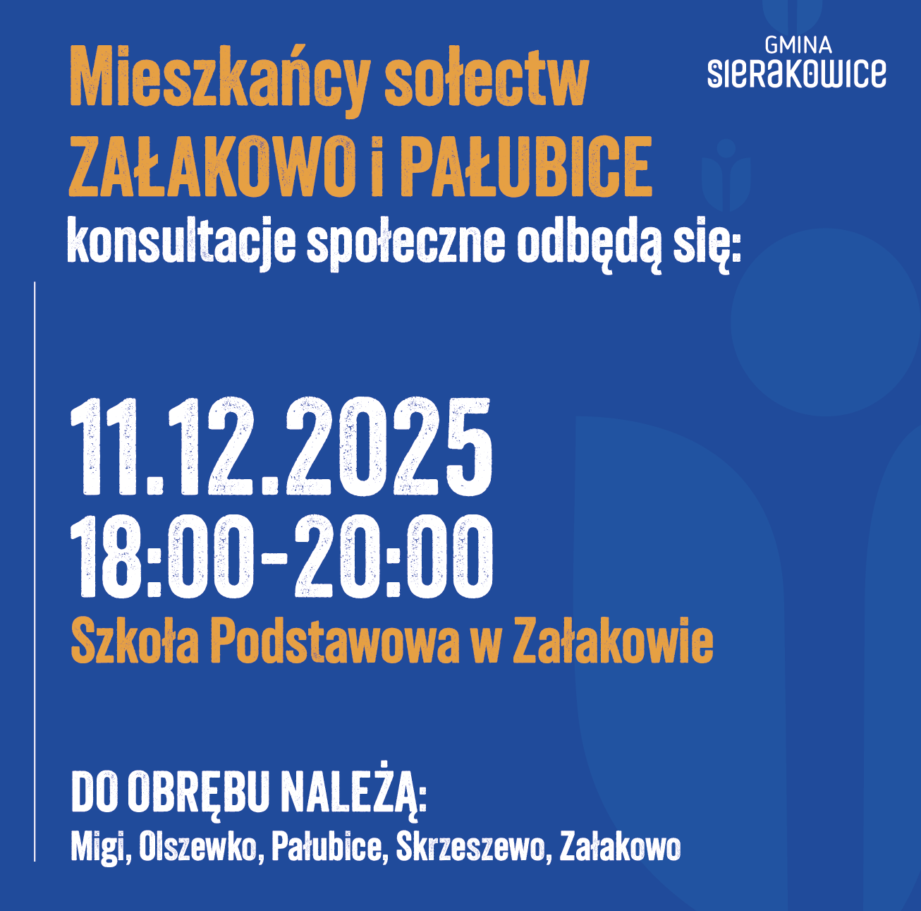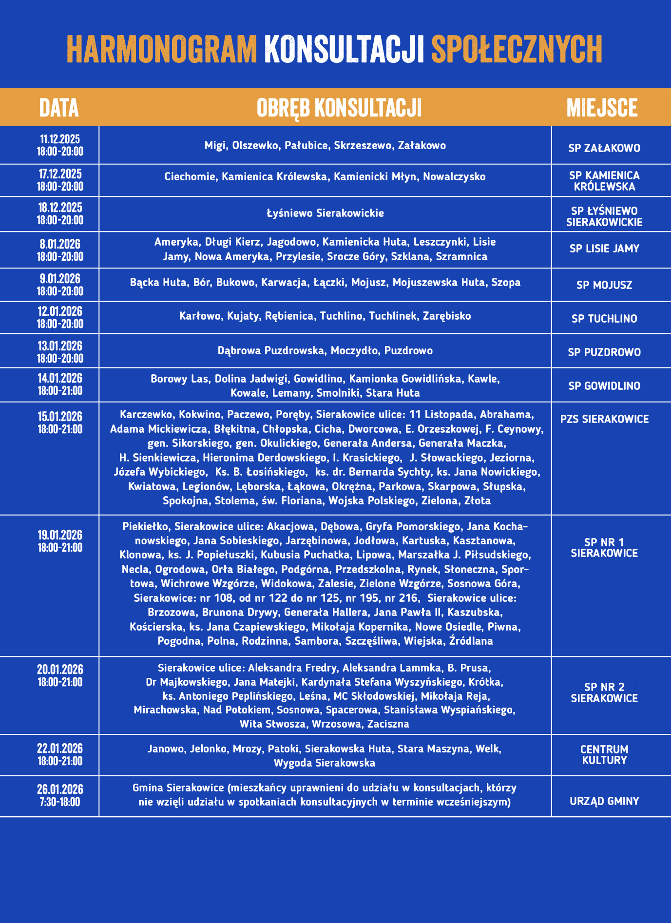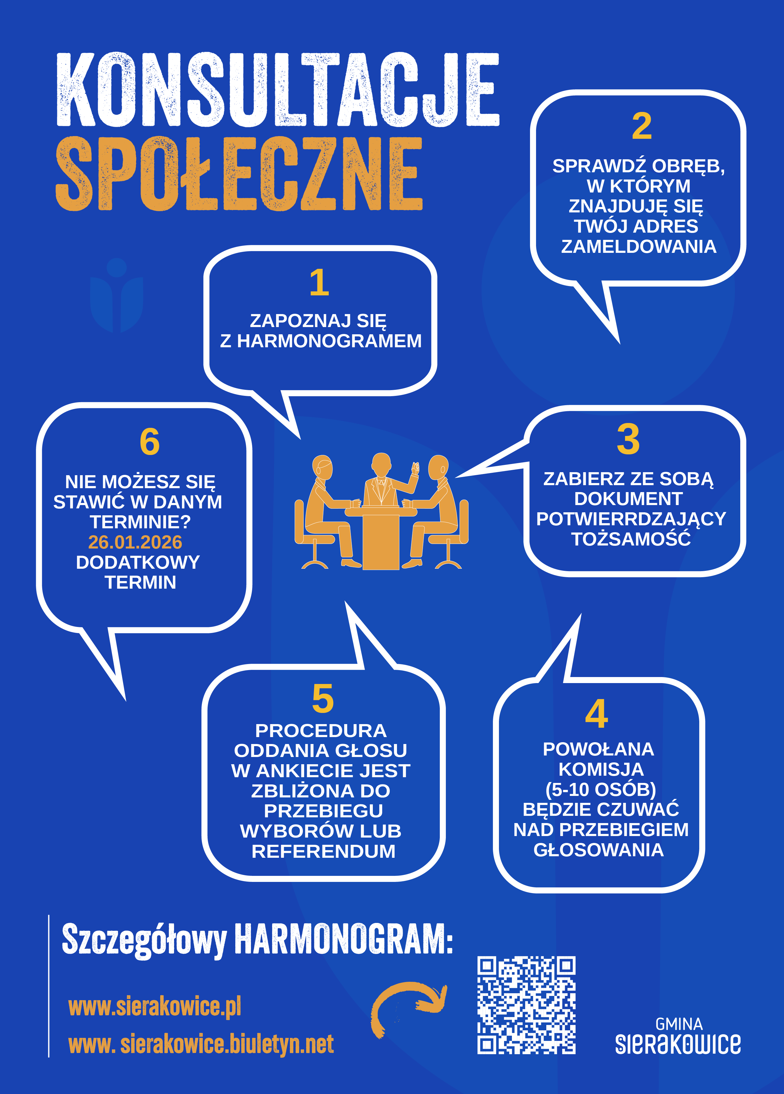 SZCZEGÓŁY ORGANIZACYJNE DOTYCZĄCE KONSULTACJI SPOŁECZNYCH Z MIESZKAŃCAMI GMINY SIERAKOWICE W SPRAWIE NADANIA MIEJSCOWOŚCI SIERAKOWICE STATUSU MIASTA ORAZ HARMONOGRAM SPOTKAŃ KONSULTACYJNYCH
