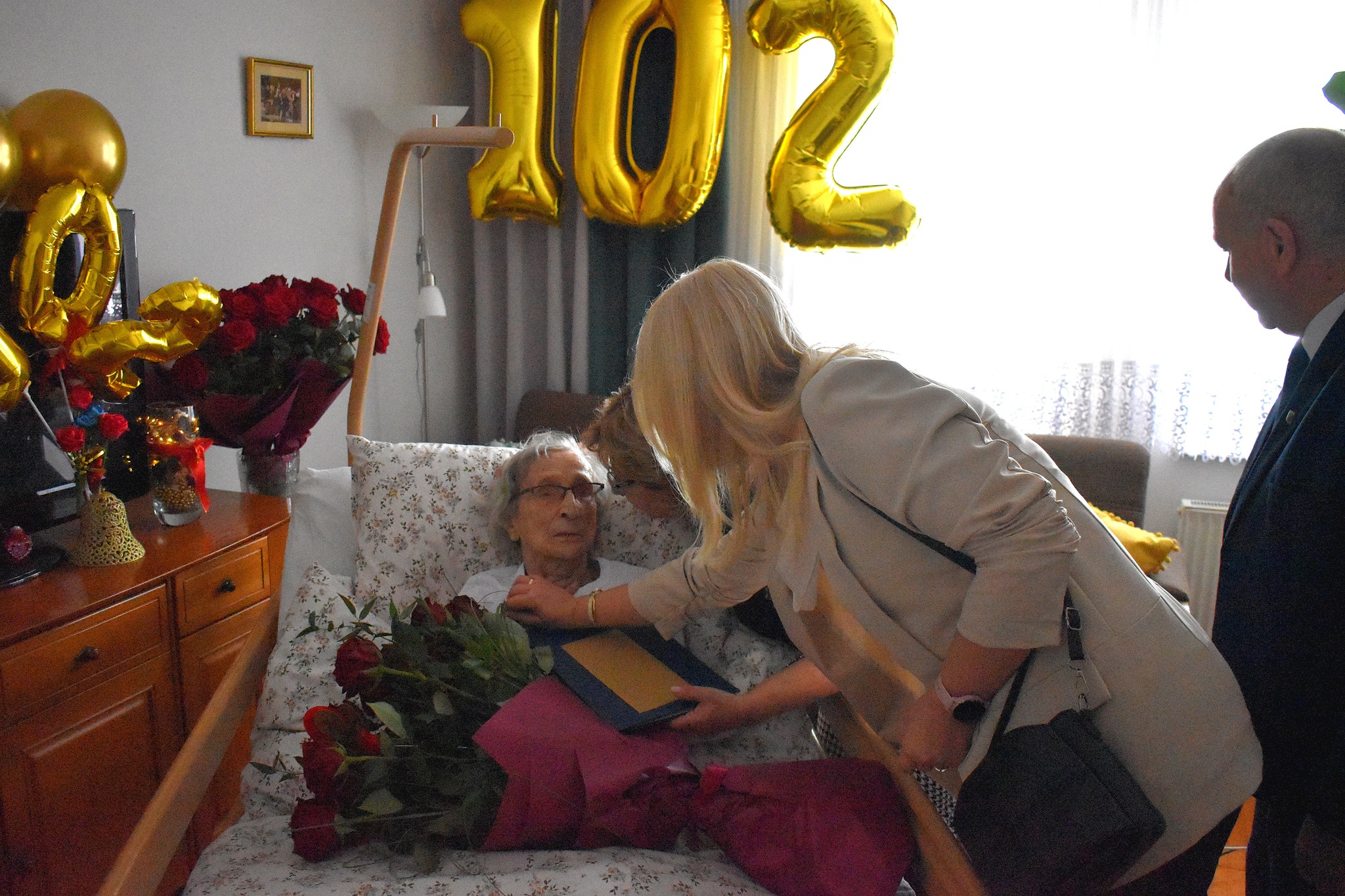 Z tej wyjątkowej okazji Solenizantkę, która obecnie przebywa u córki w Gdańsku, w piątek, 23 stycznia 2026 r., odwiedzili Wójt Gminy Sierakowice Mirosław Kuczkowski oraz Kierownik Urzędu Stanu Cywilnego w Sierakowicach Agnieszka Kostuch.